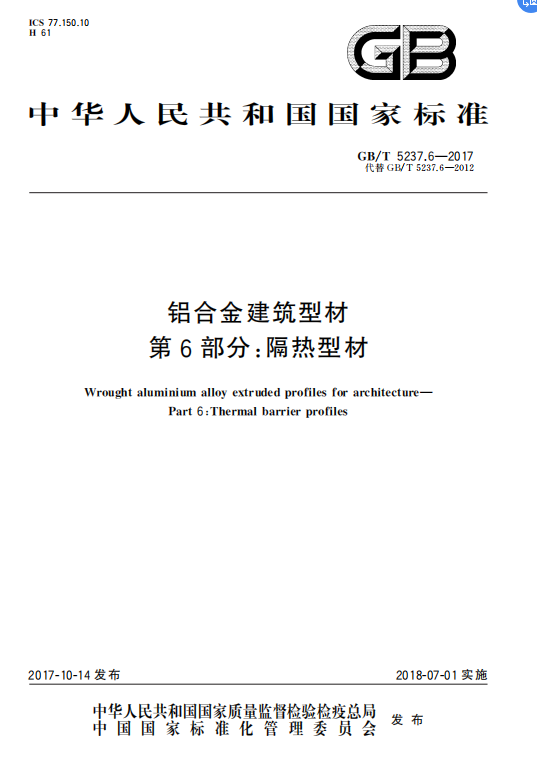 GB/T 5237.6-2017 铝合金建筑型材 第6部分:隔热型材