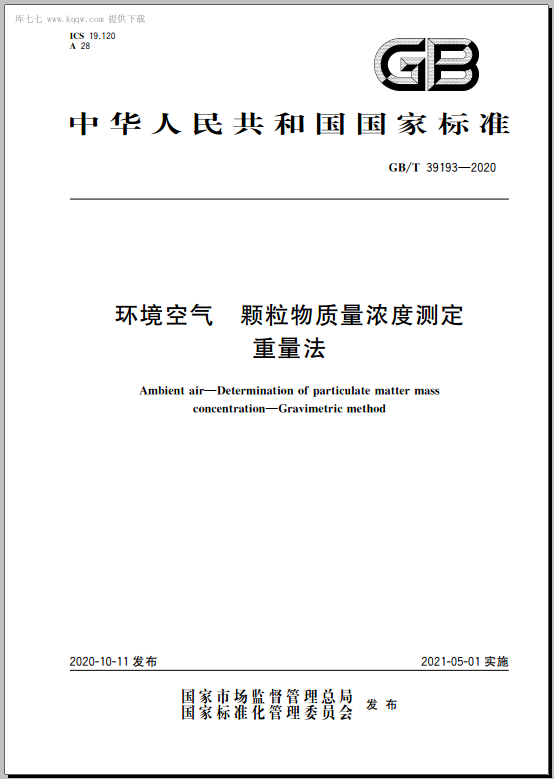GB/T 39193-2020 环境空气 颗粒物质量浓度测定 重量法