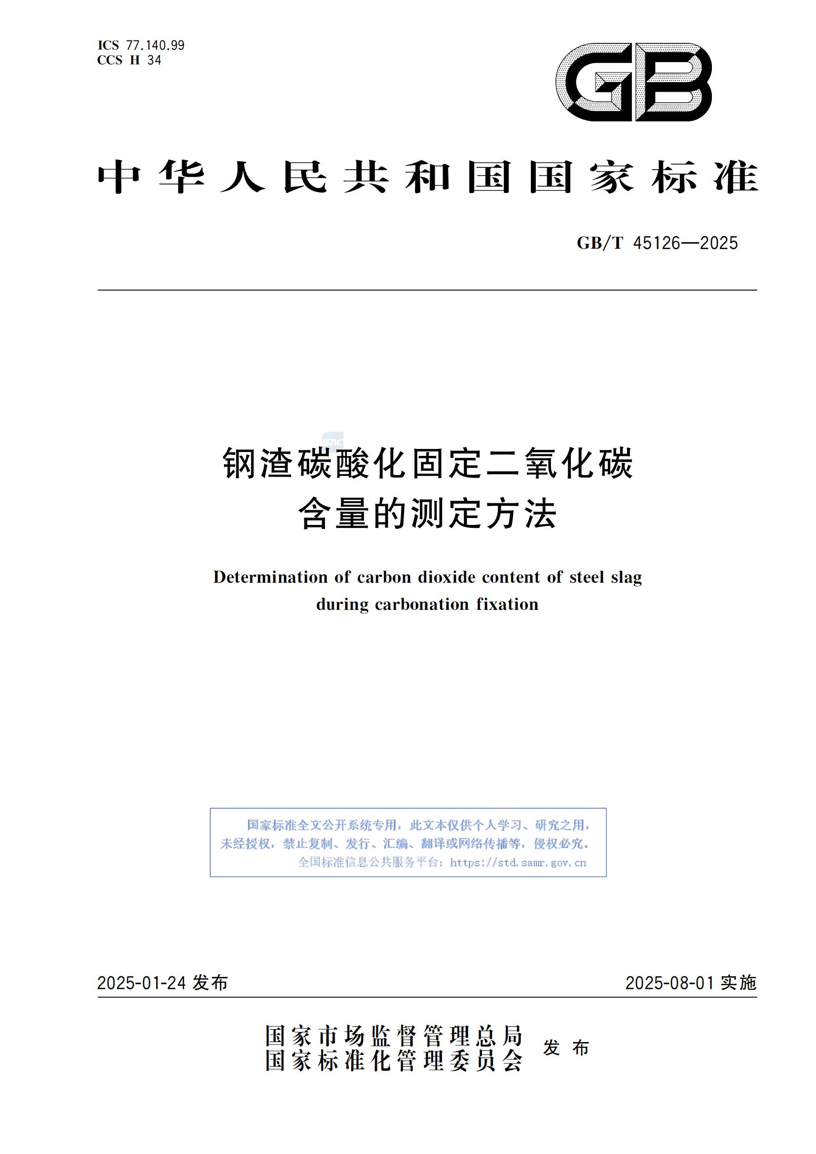 英文名称:Determination of carbon dioxide content of steel slag during carbonation fixation