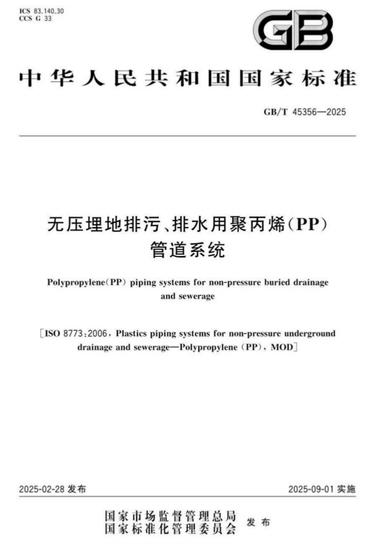英文名称:Polypropylene(PP)piping systems for non-pressure buried drainage and sewerage