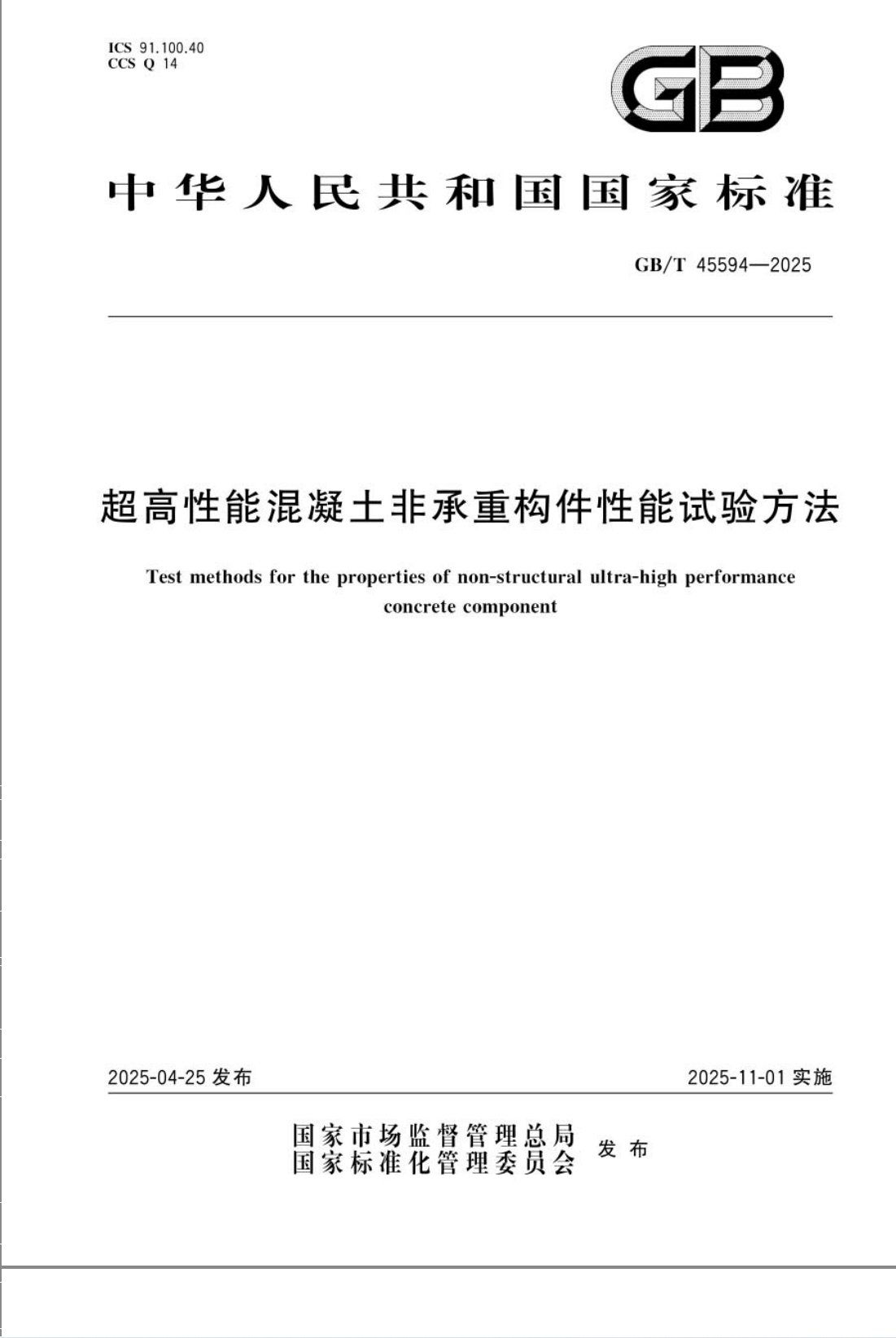 英文名称:Test methods for the properties of non-structural ultra-high performance concrete component