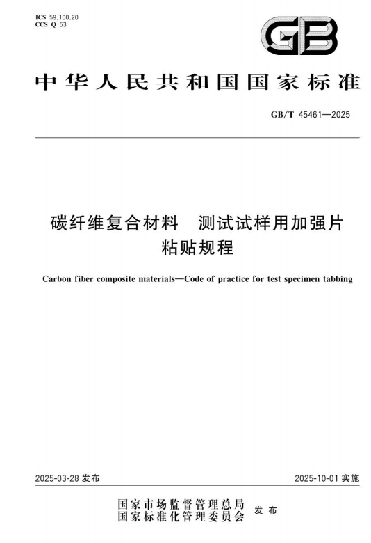 英文名称:Carbon fiber composite materials—Code of practice for test specimen tabbing