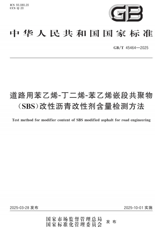 中文名称:道路用苯乙烯-丁二烯-苯乙烯嵌段共聚物(SBS)改性沥青改性剂含量检测
