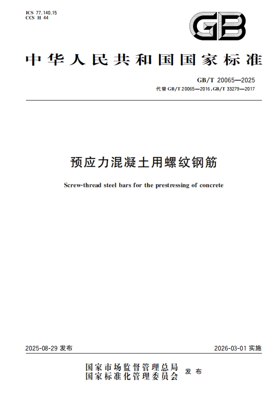 英文名称:Screw-threadsteelbarsfortheprestressingofconcrete